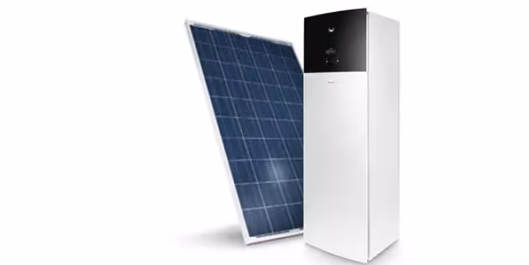 Het systeem haalt warmte uit de lucht en zet die om in warm water, waardoor je aanzienlijk kan besparen ten opzichte van traditionele boilers.